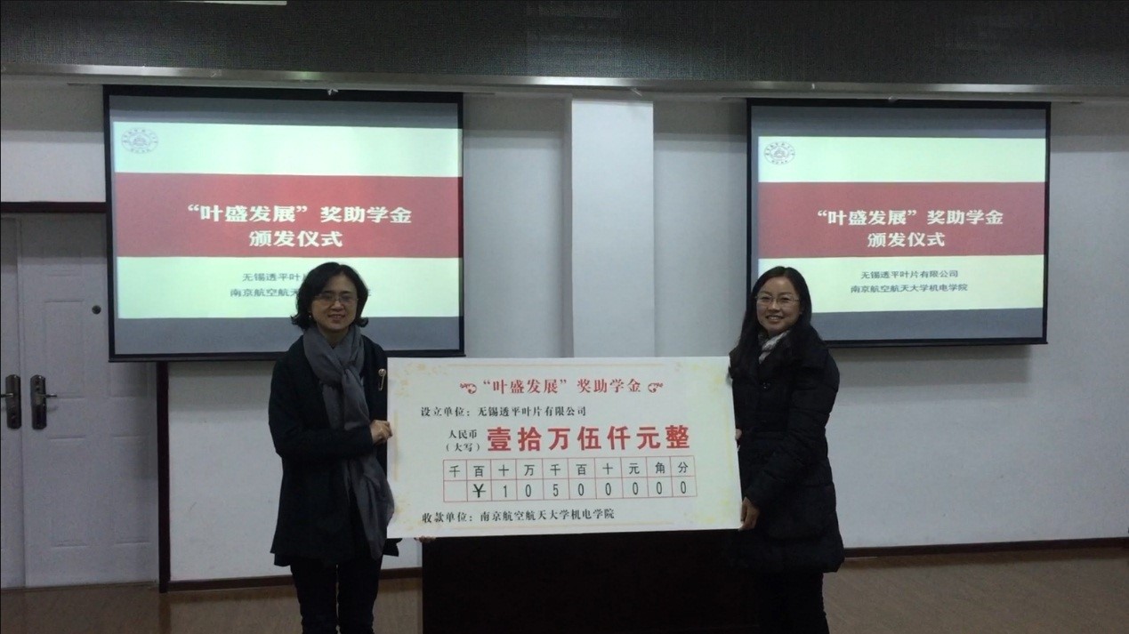 2015年11月26日上午10点极速赛车玩法 在明故宫校区举行2014-2015年度 “叶盛发展”企业奖助学金发放仪式。设立单位无锡透平叶片有限公司人力资源与党群部陈纯部长、人力资源部孙珂、极速赛车玩法 党委副书记许赞、各年级辅导员以及获奖学生代表出席了会议。
