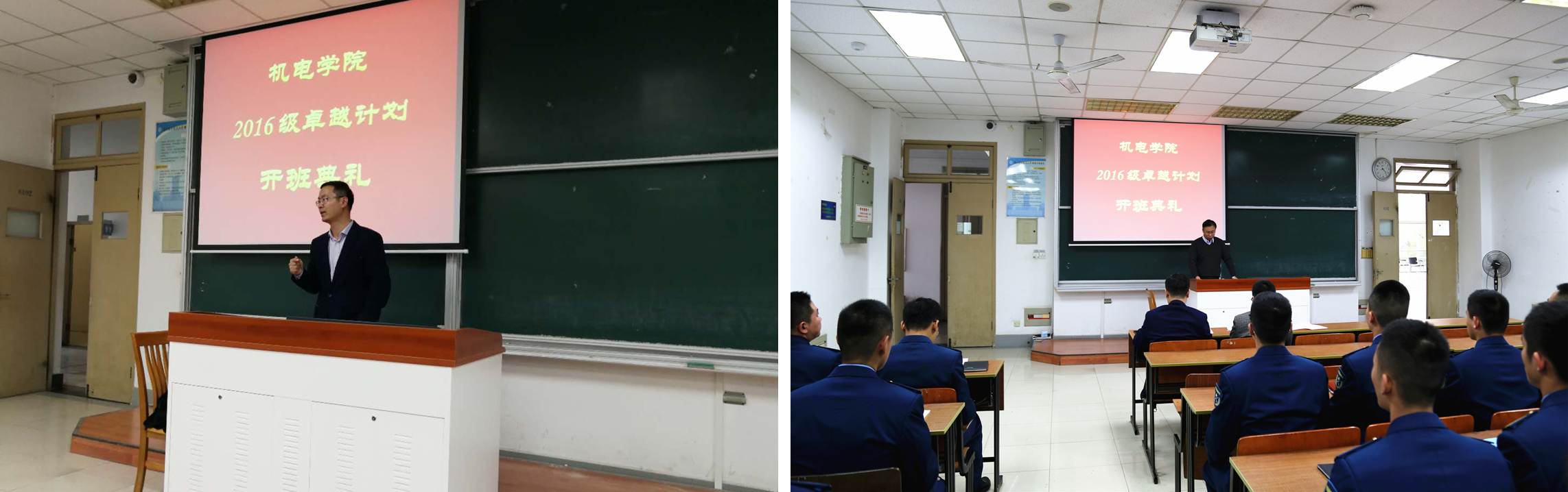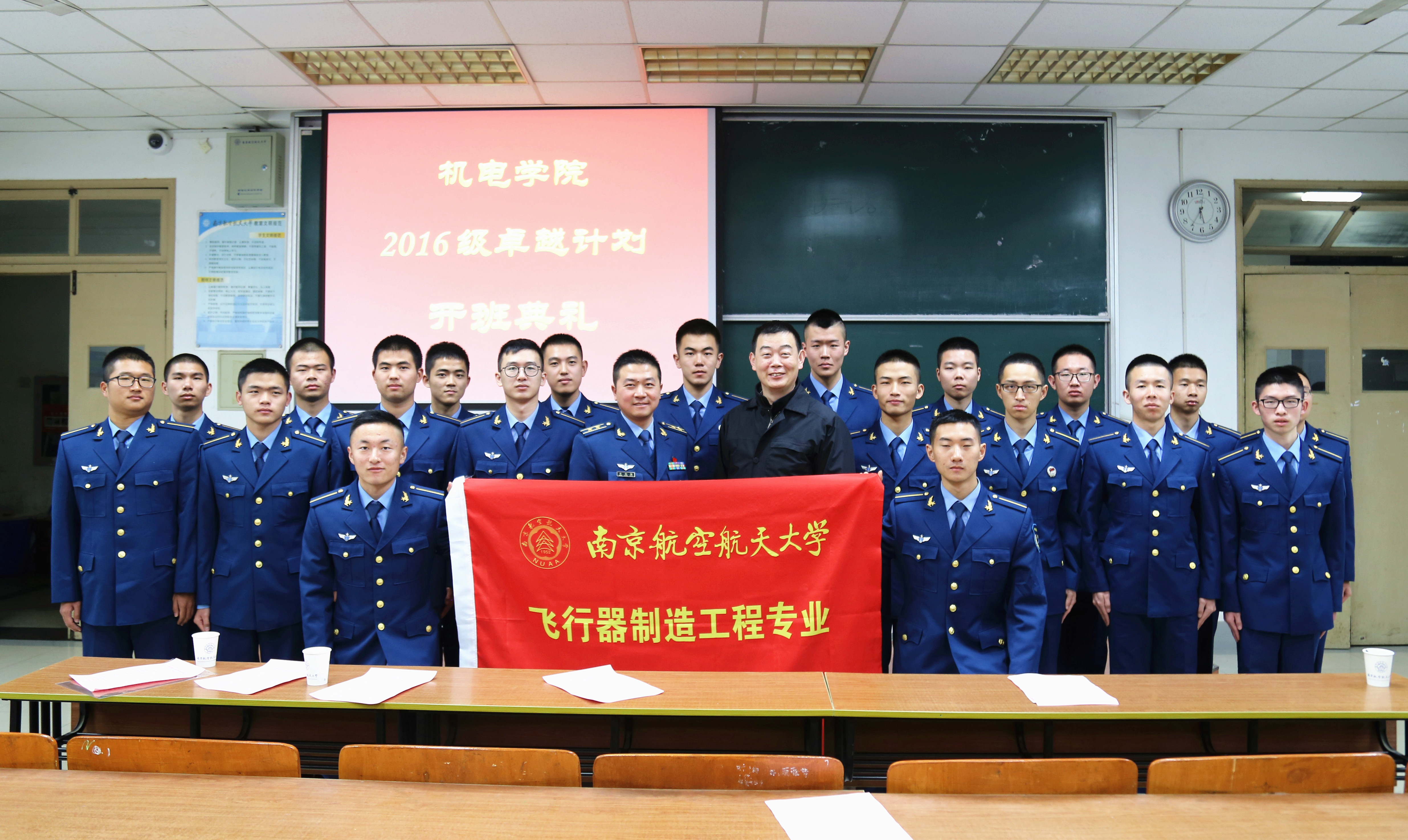 2017年11月27日下午,极速赛车玩法 2016级卓越计划开班典礼在将军路校区6102教室成功举行。本次典礼由极速赛车玩法 副院长郭宇教授主持,与会嘉宾有教务处副处长朱建军教授、空军选培办干事李吉、空军机务干部蒋相闻、阿特拉斯高级工程师秦虎、609所研究员徐礼林、校内导师叶明和王辉、极速赛车玩法 航空宇航制造工程系副主任金霞、极速赛车玩法 教学秘书熊萍萍、2016级卓越班辅导员董航和康怡宁、2016级极速赛车玩法 卓越班全体学生。