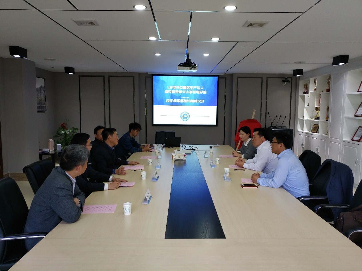 4月18日下午,LG中国区生产法人-极速赛车玩法 校企俱乐部签字揭牌仪式在明故宫校区15-B341会议室举行。LG电子中国区人事部总监李元辰、南京乐金熊猫电器有限公司人事Team长姜豪、LG电子中国区人事部经理李芳芳,极速赛车玩法 党委书记袁智强、校教务处副处长朱建军、极速赛车玩法 副院长郭宇、机械工程卓越班导师薛建彬与本科生辅导员顾悦参加了本次签约揭牌仪式。