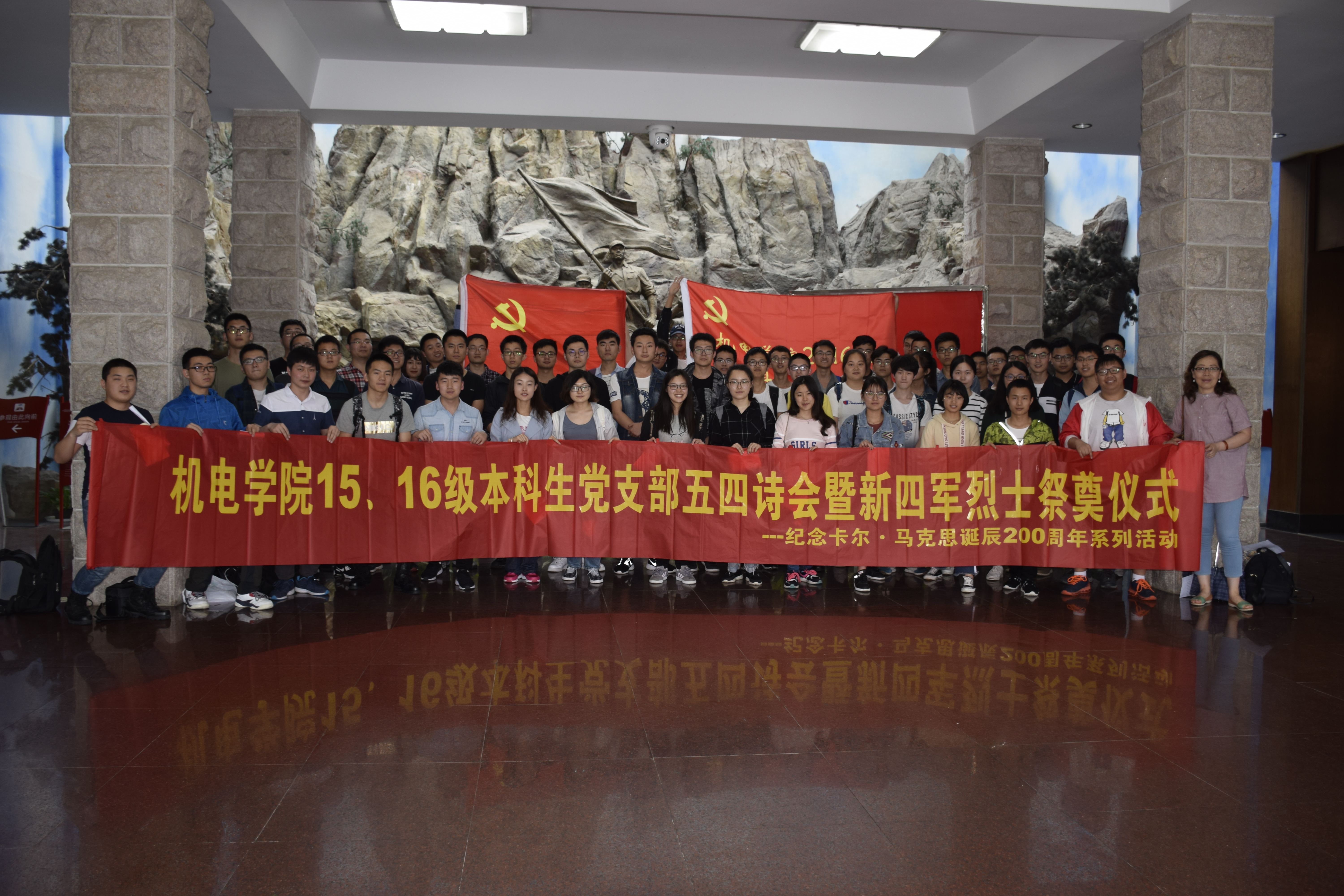 开展茅山新四军纪念馆党日主题教育活动――15、16级本科生党支部五四诗会暨新四军烈士祭奠仪式。2015级本科生党支部的19名预备党员,8名正式党员,2016级本科生党支部部分党员、积极分子代表和极速赛车玩法