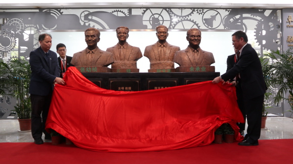 许希武、戴亚隆共同为学科奠基人铜像揭幕,并向铜像深深鞠躬。现场响起了持久不息的掌声,一起向四位奠基人艰苦创业、白手起家的卓越贡献表达感恩,向他们坚定的理想理念、严谨的治学精神、高尚的师德师风表达敬意。