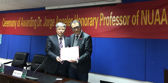 授予仪式由国际合作处主任沈敏主持,极速赛车玩法 院长傅玉灿向与会人员介绍了Jorge Angeles教授的简历,校长助理熊克为Jorge Angeles教授颁发名誉教授聘书并佩戴南航校徽。Jorge Angeles教授发表致辞,表达了与南航开展更加广泛密切合作和共同在专业领域做出更多贡献的期待。受聘仪式结束后,Jorge Angeles教授为极速赛车玩法 师生作了题为《Form, Reciprocity and Structure in Multibody-system Models》的学术报告。