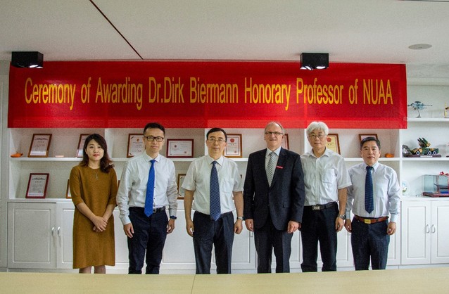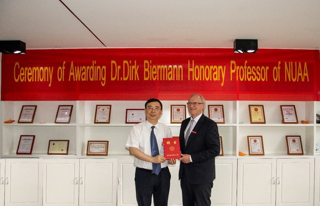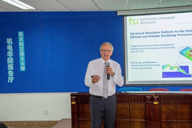 授予仪式由机电机电学院极速赛车计划/ 玩法规则 极速赛车计划/ 玩法规则 副院长徐正扬主持,国际合作处处长张卓向与会人员介绍了Dirk Biermann教授的简历,副校长姜斌为Dirk Biermann教授颁发荣誉教授聘书并佩戴南航校徽。Dirk Biermann教授发表致辞,对南航及各位领导、老师表示感谢,并分享了他多年的学术经历,最后表达了与南航开展更加广泛合作和共同在专业领域做出更多贡献的愿望。受聘仪式结束后,Dirk Biermann教授在522会议室为机电学院极速赛车计划/ 玩法规则师生作了题为《Advanced Simulation Methods for the Design of Efficient and Reliable Machining Processes》的学术报告。