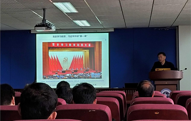 会议由052系教职工党支部书记卢文壮主持,他传达了习近平总书记在党史学习教育动员大会上的重要讲话,深刻阐述了开展党史学习教育的重大意义,深刻阐明了党史学习教育的重点和工作要求,对党史学习教育进行了全面动员和部署,为开展好党史学习教育指明了方向,提供了根本遵循。在“两个一百年”奋斗目标历史交汇的关键节点,在建党一百周年这个特殊节点,开展党史学习教育正当其时。我们要“回顾走过的路,不忘来时的路”,才能“走好未来的路”。倡导同志们既要抓好自身的学习教育,也要在工作中充分利用丰富的红色教育资源,通过形式多样、特色鲜明的教育活动,更好地把党史中的宝贵营养转化为党员的政治素养。