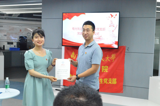 李哲博士受聘为电光制造团队研究生党支部党建顾问,党支部书记刘富玺为李哲颁发受聘证书。随后,李哲为大家带来了“钢铁长城上党旗飘扬”主题党课,她结合影视资料为大家生动形象地讲述了人民军队与人民群众的血脉联系,听党指挥、能打胜仗、作风优良的光荣传统,讲述了一个又一个党领导人民军队取得胜利的历史故事。党领导下的人民军队始终是祖国繁荣安定,社会主义现代化建设,实现伟大中国梦路上的定海神针。