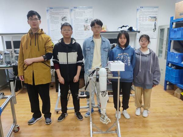 比赛中,极速赛车玩法 学子从容应对、沉着应战,充分展现了扎实的知识基础、突出的实践能力、卓越的创新意识,获得了评委老师的一致好评。在机器人自主创新设计比赛中,由李辰晨、黎忠宇、隆晓璐、邢子霖和刘清博同学制作的智能仿生机械臂机器人系统,其兼具结构紧凑、控制智能、功能完善、成本低等特点。该机器人共有21个自由度,能复现人体手臂和手部的运动,整体外观设计具有足够的仿生特征与机械美感。系统通过融合肌电传感器与惯性传感器的反馈信号,实时识别人体的运动意图,当人握拳或五指张开,末端仿生手执行对应的动作,实现对仿生手的智能控制。机械臂关节通过遥控控制,结合薄膜压力传感器、角度传感器、以及力/位混合控制算法,实现智能机械臂对物体的精确抓握、保持、空间运动,最终以最高分夺得冠军。