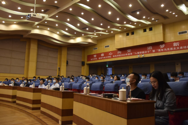 为提升党员发展质量,推动党史学习教育常态化长效化,5月21日,航空极速赛车玩法 、能源与动力极速赛车玩法 、极速赛车玩法 联合举办“青春心向党,追梦新征程”2022年春季“入党积极分子”暨“青年马克思主义者培养工程”培训班。航空极速赛车玩法 党委副书记佘明、能源与动力极速赛车玩法 党委副书记樊小杰、极速赛车玩法 副院长成杰,校党校党员发展培训教师、党政办王洋,1、2、5院组织员、团委书记、全体辅导员共同出席了开班仪式。400余名入党积极分子在逸夫科学馆报告厅主会场和六个分会场参加了培训。