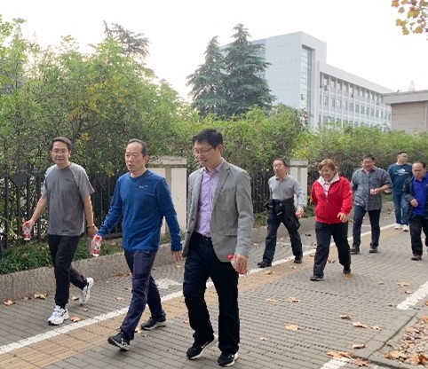 秋日暖阳下,健身正当时。教职工们迈着矫健的步伐,沿中山门大街,环绕中山陵燕雀湖、前湖公园,途经琵琶湖公园、南京城墙前湖处豁口,摆动双臂,阔步前行。老师们呼吸着清新的空气,感受着自然风光,七八人成团、谈四五小事,一路欢声笑语,尽情享受愉悦的时光。