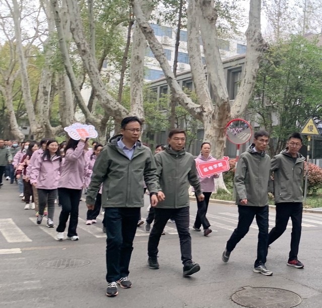 教职工们身着统一服装、整齐列队,以饱满的精神状态、昂扬的气势集体整队出发,展现出健康向上、团结奋进的精神风貌。