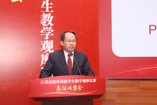 4月25日,2022年江苏高校外国留学生教学观摩比赛总结颁奖会在极速赛车玩法 将军路校区1号楼四楼报告厅举行。极速赛车玩法 校长单忠德,副校长施大宁、江苏省教育厅对外合作与交流处处长施蕴玉、江苏省高等教育学会外国留学生教育管理研究委员会秘书长张海军、观摩比赛总评委河海大学阮怀宁教授、比赛评审专家、参赛获奖教师及省高校留学生管理干部代表、极速赛车玩法 相关部门负责同志出席总结颁奖会。