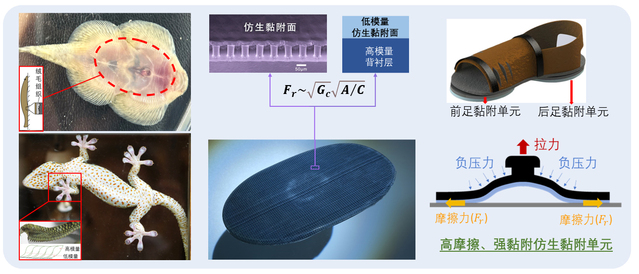 自然界具有攀爬能力的生物为上述问题的解决提供了思路。2017年,极速赛车玩法 戴振东教授、姬科举副教授团队联合中国航天员科研训练中心科研团队,受壁虎黏附器官和爬岩鳅附着结构-功能启发,突破仿生黏附材料表面高适应性、耐候性、耐久性等多项核心技术,历时五年,前后经过多轮方案论证,样件更迭七代,成功研制了具有“低预压、高摩擦、可控黏-脱附”特征的仿生黏附鞋,为空间站航天员在轨失重防护提供了一种颠覆性仿生新技术。