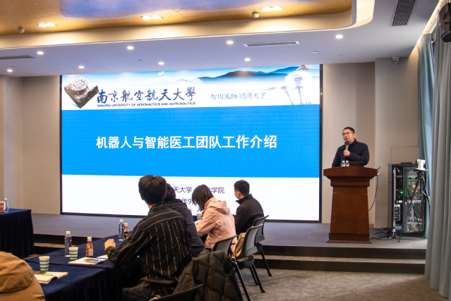随后,参会三方在会议室进行了热烈的讨论。麦澜德有限公司的王旺副总经理介绍了公司的产品战略和人才培养方案。机器人与智能医工团队研究生党支部指导老师陈柏教授围绕课题组近年来的科研成果,介绍了团队在医疗机器人、康复机器人及生物医学检测领域的研究与应用。江苏省医疗器械检验所的张崴主任和樊夏雷所长分别介绍了检验所的基本概况和所承担的医疗器械设备检验服务内容。最后,三方又进一步讨论了支部联合共建、人才培养与能力需求、校企产学研协同等合作事宜。