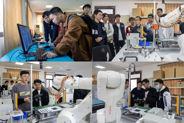 来自机器人技术实验室的王灵禺老师向同学们介绍了实验室主要研究方向,涵盖了机电控制及自动化、机器人与传感器技术等多个重要领域。通过实验室配备的KUKA机器人现场实际操作,向大家展示了该机器人的轻量、高扭力、强韧性等特点以及其广泛的应用领域。同时,同学们体验了供科创竞赛使用的机器人设施,感受到了极速赛车玩法 为学生提供的良好学习与科创环境。