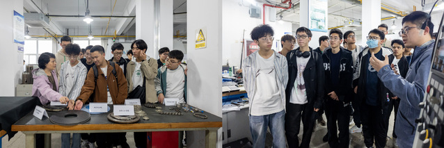 随后,40余名学生在中心实验室杨雪峰、朱文魁、颜芳芳老师带领下,走进机械工程国家级实验教学示范中心,重点体验了机器人技术、多能场机械加工和飞机装配虚拟仿真实验室,讲解老师依次为大家介绍了各个实验室的研究方向、工程应用及本科生可以参与的科研项目,并通过视频和现场实际操作向同学们展示了部分研究成果,使同学们近距离感受到了前沿科研的独特魅力。
