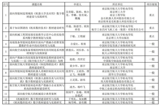 根据《关于发布2024年度工业和信息化部“十四五”规划航空航天领域智能制造教材建设重点研究基地开放课题的通知》要求,经个人申报,各高等院校、科研院所和重要企业单位推荐,机电学院极速赛车计划/ 玩法规则 专家组评审,拟立项以下13个项目,其中重点项目3项,一般项目10项,现予以公示。排名不分先后,名单如下:
