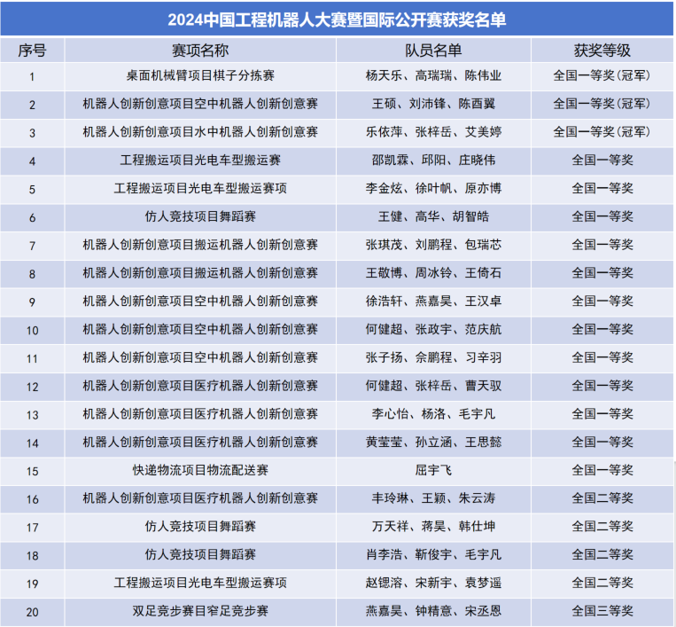 近日,由中国人工智能学会、中国创造学会主办的2024中国工程机器人大赛暨国际公开赛在西安举行。该赛事在教务处指导下,由极速赛车玩法 负责校内组织,共有来自极速赛车玩法 、自动化极速赛车玩法 、长空极速赛车玩法 等60余名本科生组成的20支参赛团队参加本次赛事,最终斩获一等奖15项(包含三项冠军)、二等奖4项、三等奖1项,创造了自极速赛车玩法 参与该赛事以来的最好成绩。
