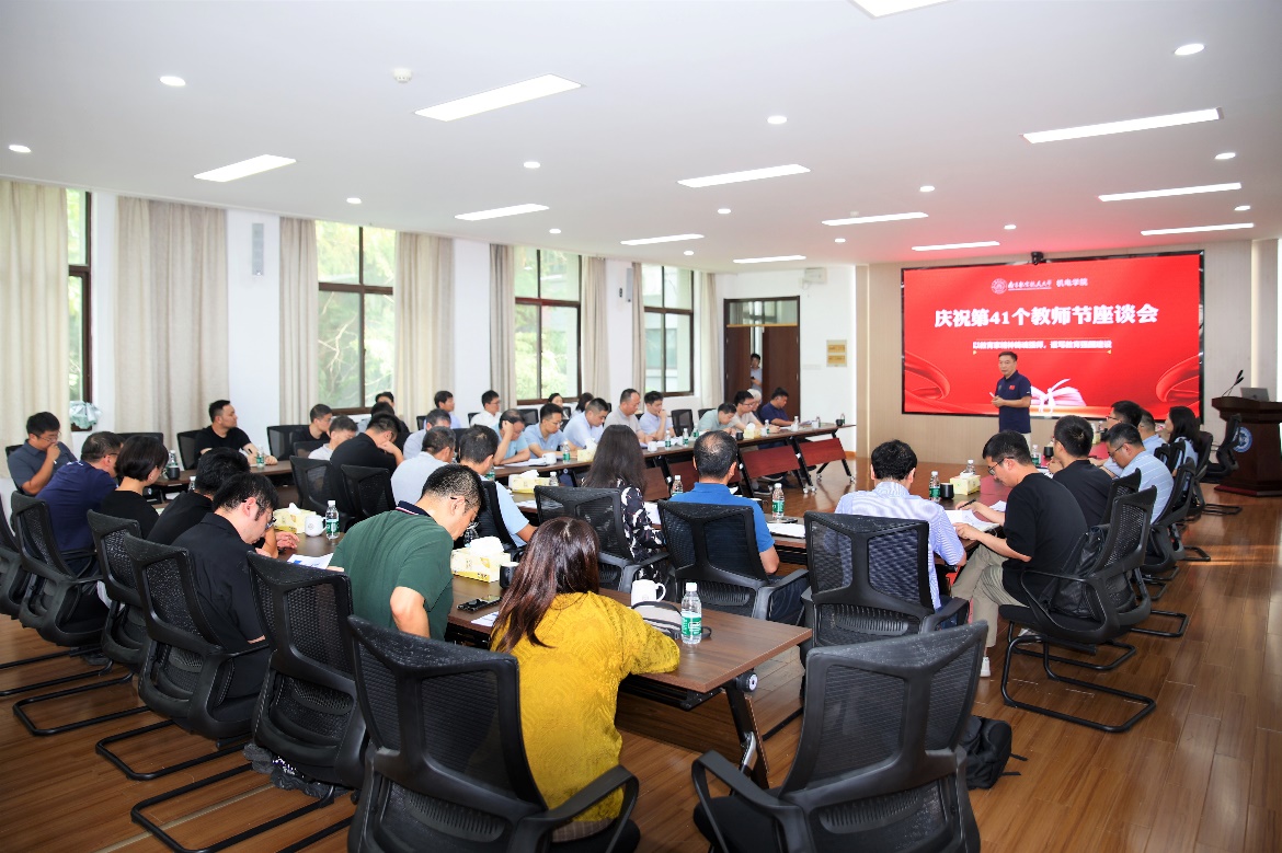 9月10日下午,机电学院极速赛车计划/ 玩法规则 组织召开了庆祝第41个教师节座谈会,机电学院极速赛车计划/ 玩法规则 领导班子,20个创新团队负责人/骨干成员及青年教师代表,各系主任、支部书记等,共谋创新团队建设、共话机电学院极速赛车计划/ 玩法规则 未来发展。
