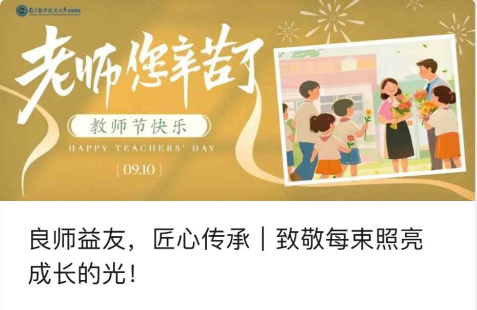 为深入学习贯彻习近平总书记关于教育的重要论述,大力弘扬教育家精神,激励和引导广大教师争当“四有”好老师,践行“四个相统一”,争做“四个引路人”,营造全社会尊师重教的良好氛围,在第41个教师节到来之际,机电学院极速赛车计划/ 玩法规则 微信公众号特推出《良师益友,匠心传承|致敬每束照亮成长的光!》,精选展现了荣获机电学院极速赛车计划/ 玩法规则 “良师益友”称号的28位教师在指导学生过程中留下的珍贵瞬间。他们以学识启迪智慧,以品格塑造灵魂;既是学术领航者,也是人生引路人。一幅幅照片定格了老师们传道授业的专注身影与关怀备至的温暖场景,汇聚了学子们笔下的真挚感言与深情祝福,生动体现了机电学院极速赛车计划/ 玩法规则 尊师重教、薪火相传的优良传统。