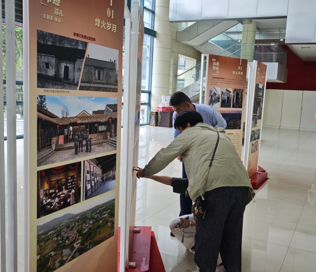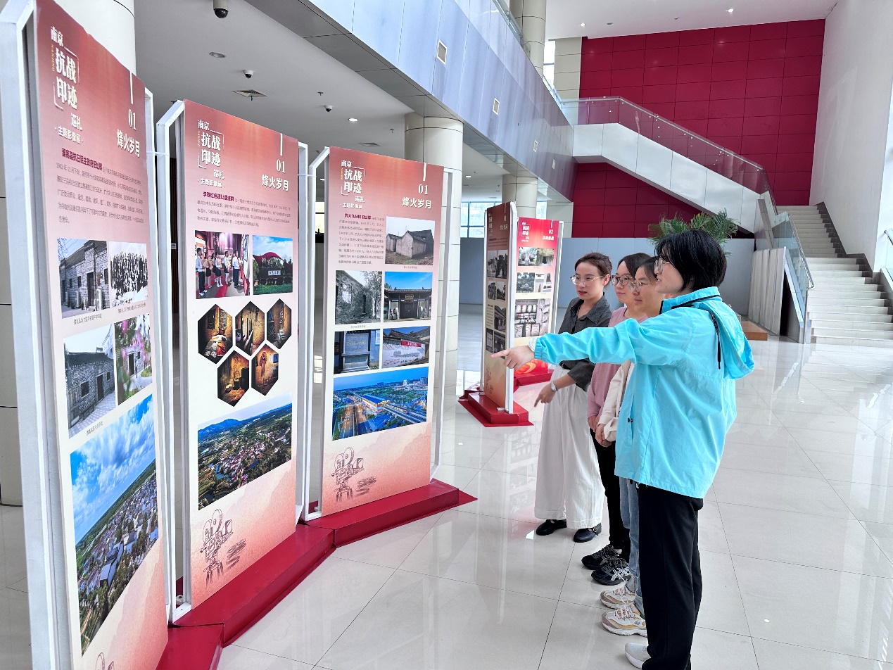 摄影展分为“烽火岁月”、“浴血奋战”、“复兴有我”三大篇章,通过两百余幅精选作品,生动展现了南京地区抗战历史脉络与新时代发展成就。通过一幅幅珍贵影像,党员同志们在光影之中仿佛追随着先辈的足迹,回溯新四军在南京英勇斗争、建设抗日根据地的历程。从溧水、高淳的抗日民主政府旧址群到江宁的仲铭亭,从南京制造业的崛起到苏超的活力迸发,无一不在诉说南京作为英雄城市在党的领导下走向复兴的辉煌历史,使在场的同志们更加深刻地感受到在党的领导下,南京不断建设发展的盛况,体会到今日繁荣发展的来之不易。