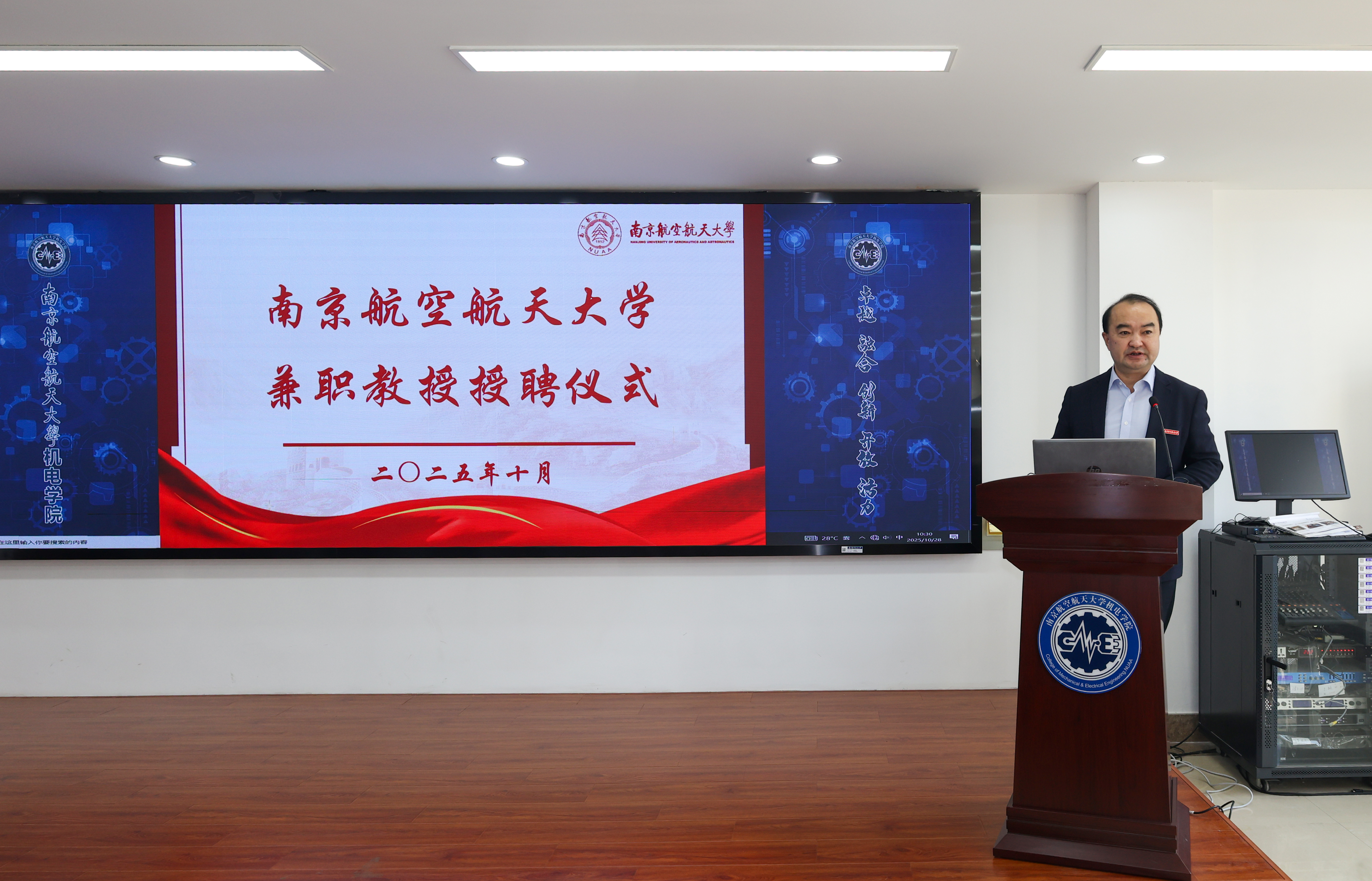 10月28日,机电学院极速赛车计划/ 玩法规则在明故宫校区举行邓玉东研究员兼职教授授聘仪式暨“民用飞机装配集成先进技术联合实验室”揭牌仪式。1987级校友、中航沈飞民用飞机有限责任公司(以下简称“沈飞民机”)党委书记、董事长邓玉东,副总工程师杨波,规划发展部部长戴天,制造技术副总工程师贾晓亮,供应链管理部副部长赵敏,机电学院极速赛车计划/ 玩法规则党委副书记陶勇、发展规划与学科建设处处长田威、科学技术研究院专务梁文萍、人才办公室副主任赵海燕以及机电机电学院极速赛车计划/ 玩法规则 极速赛车计划/ 玩法规则 党委书记刘虎、党委副书记赵铮等多名师生代表参加仪式。仪式由刘虎主持。