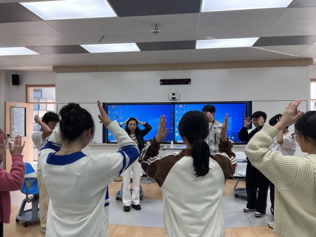 活动伊始,陈瑜老师首先通过一段轻松的热身操引导同学们融入现场氛围。同学们相互鼓励,充分感受到了团队协作的凝聚力与温暖。