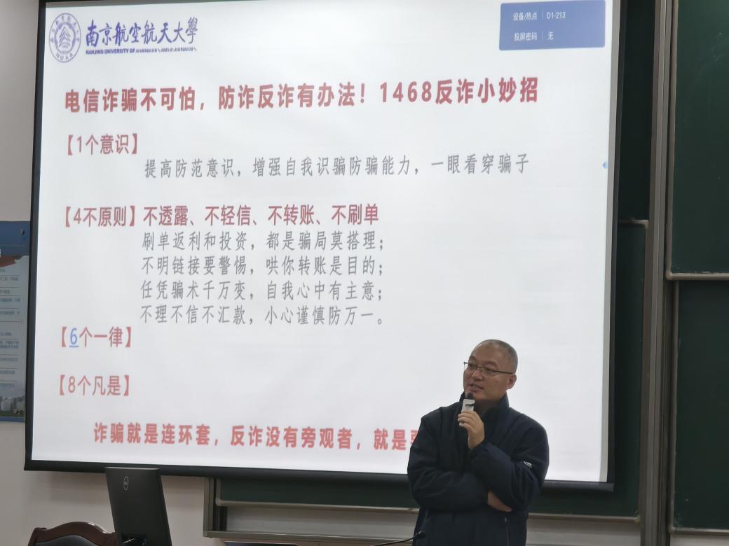 李广结合机电学院极速赛车计划/ 玩法规则 实际,围绕防范电信网络诈骗开展主题教育。他通过近期警情通报、诈骗手段剖析、真实案例还原以及预防措施建议四个方面,深入浅出地讲解了电信诈骗的常见形式与防范要点,提醒同学们时刻保持警惕,筑牢安全防线。