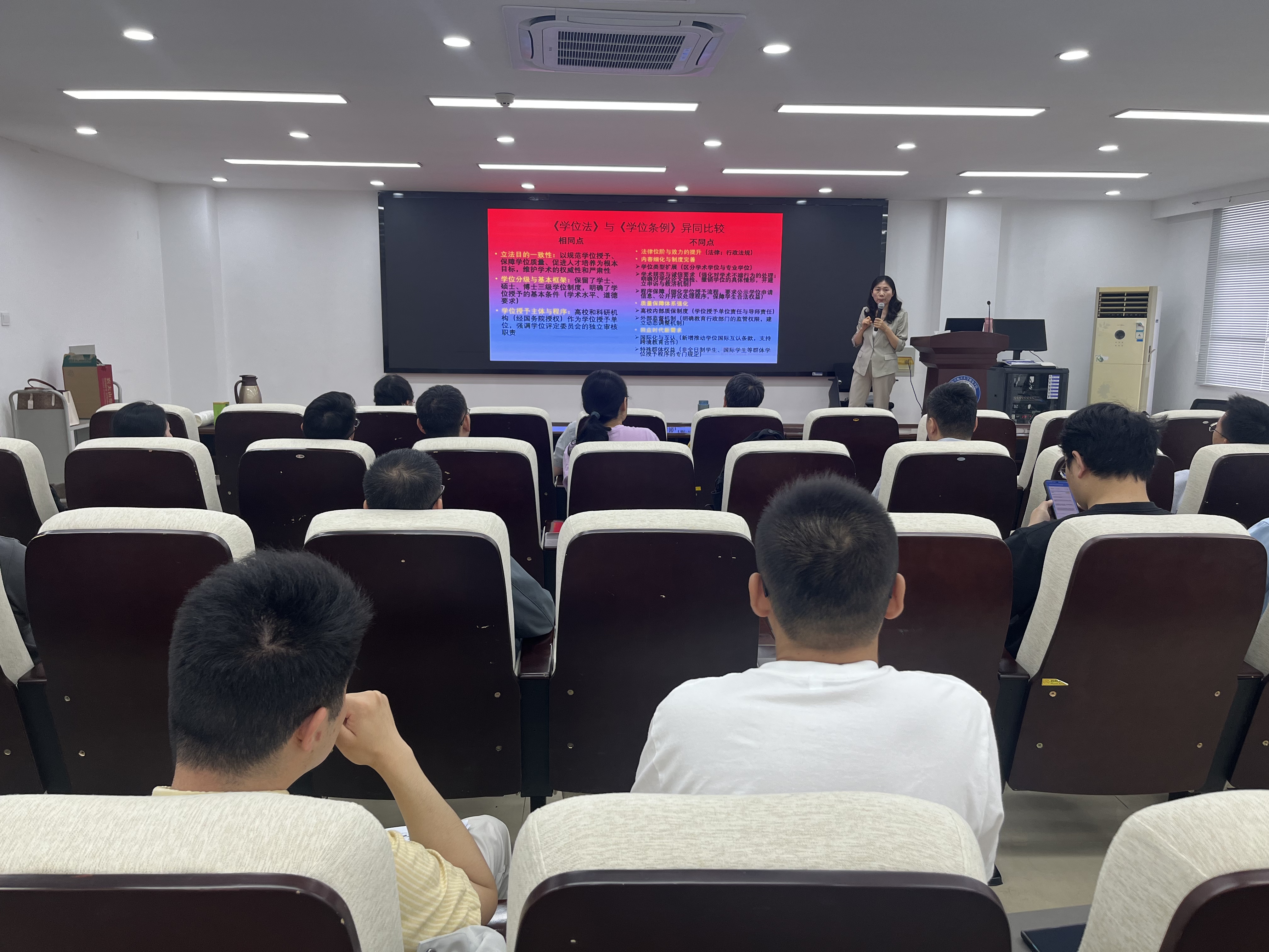 尤老师以《中华人民共和国学位法》解读——立德树人视角为题,先梳理学位条例到学位法的立法变迁,简要介绍学位法7个章节并与学位条例对比异同;接着,从立德树人出发,阐述学位法立法目的、宗旨,学位工作原则与任务、学位授予、学位质量保障等模块,强调配备优质导师与建立导师遴选、考核、监督、动态调整机制的重要性;最后,介绍了高等极速赛车玩法 预防与处理学术不端行为办法。